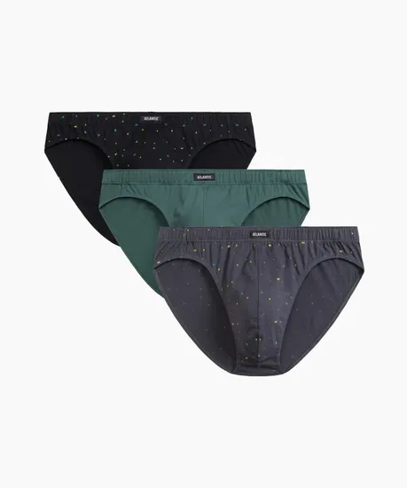 Набор из 3 мужских трусов-слипов Atlantic 3MP-186 – безупречный комфорт в классических цветах! В комплекте три модели – чёрные, зелёные и графитовые, выполненные из 100% натурального хлопка для максимального удобства. Анатомический крой с заниженной талией и скрытая туннельная резинка обеспечивают идеальную посадку без натирания. Универсальный дизайн подходит для повседневной носки и активных тренировок. Прочное хлопковое полотно устойчиво к растяжению и сохраняет форму после множества стирок. В набор входят однотонные трусы и модели с классическим принтом. Широкая размерная сетка от S до 4XL удовлетворит потребности мужчин любого телосложения. Отличный вариант для тех, кто ценит натуральные материалы и удобство!