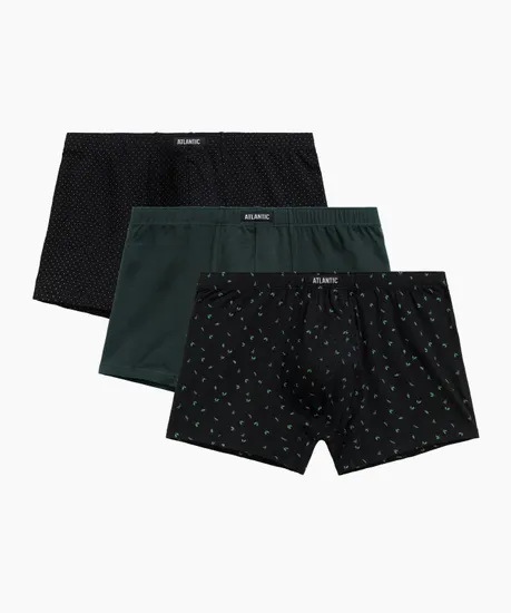 Набор из 3 мужских трусов-шорт Atlantic 3MH-196 — проверенный комфорт в деталях. Трое трусов в насыщенном изумрудном и чёрном цветах сшиты из мягкого хлопка с добавлением эластана — не раздражают кожу и сохраняют форму. Анатомическая посадка со средней линией талии, эластичная туннельная резинка без давления и продуманный крой штанин обеспечивают свободу движений в любой ситуации: для повседневной носки, спорта или отдыха. В наборе универсальные варианты под любой стиль: сдержанная однотонная и модели со стильным принтом. Износостойкий материал выдерживает многочисленные стирки без потери качества и формы. Широкая размерная сетка от S до 4XL учитывает особенности разных типов фигуры. Трусы-шорты Atlantic 3MH-196 — разумный выбор для тех, кто ценит проверенное качество польского бренда Atlantic, повседневный комфорт и продуманный дизайн.