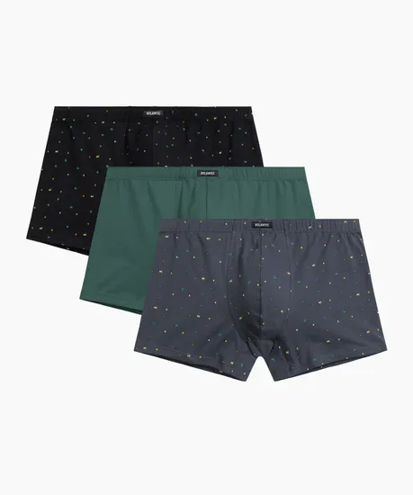 Набор из 3 мужских трусов-шорт Atlantic 3MH-204 – идеальное сочетание комфорта и стиля! Комплект включает три модели в классических цветах – чёрный, зелёный и графитовый, с анатомическим кроем для идеальной посадки. Мягкий хлопок с добавлением эластана обеспечивает комфорт при повседневной носке и занятиях спортом. Удобная туннельная резинка не давит, а профилированный гульфик и штанины стандартной длины делают эти трусы-шорты универсальными. Прочный трикотаж устойчив к растяжению и сохраняет форму даже после множества стирок. Набор представлен в нейтральных цветах – однотонные и с классическим принтом. Широкая размерная сетка от S до 4XL подойдет мужчинам любого телосложения. Отличный подарок для тех, кто ценит качество и удобство!
