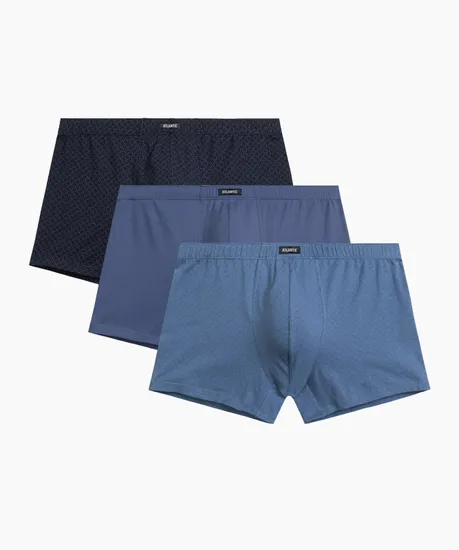 Набор из 3 мужских трусов-шорт Atlantic 3MH-212 — идеальный баланс стиля и комфорта. В комплекте три модели в модных оттенках — тёмно-синем, голубом и деним, включая однотонный вариант и варианты с классическими принтами. Анатомический крой со средней линией талии и профилированным гульфиком обеспечивает идеальную посадку, а скрытая туннельная резинка исключает дискомфорт при носке. Мягкий хлопок с добавлением эластана гарантирует комфорт в течение всего дня и сохраняет форму после множества стирок. Универсальный дизайн подходит для повседневной активности. Размерная сетка от S до 4XL учитывает особенности разных типов фигуры. Стильная упаковка делает набор отличным подарком. Трусы-шорты Atlantic 3MH-212 — разумный выбор для тех, кто ценит качество и удобство в любой ситуации.