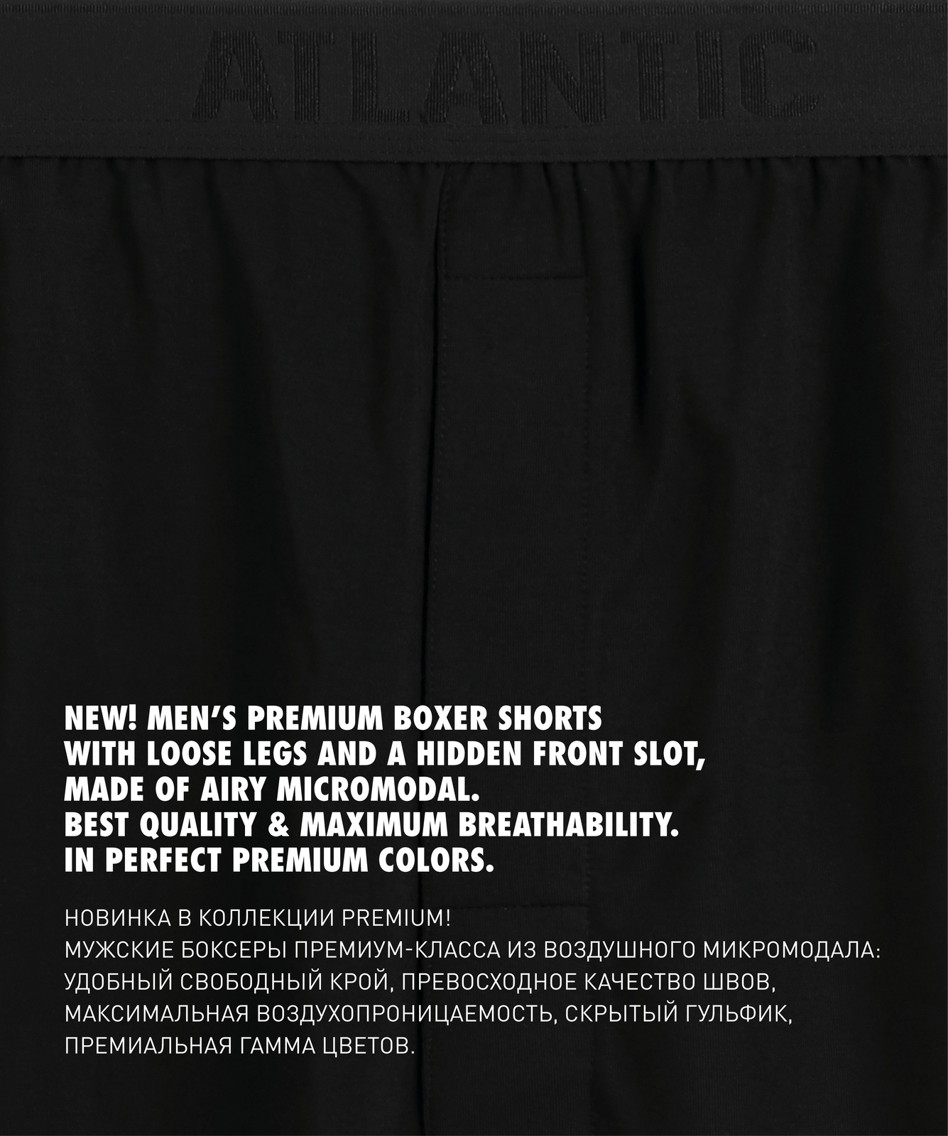 Мужские трусы-боксеры Atlantic MBX-662, черного цвета. Модель премиального качества, выполнена из экологически чистого и современного материала - модала, который отличается легкостью, мягкостью и практичностью. Классический свободный крой обеспечивает идеальную посадку, свободу движений и комфорт при повседневной носке. Удобная пришивная, брендированная резинка из микрофибры с молочной нитью не сдавливает и не натирает кожу. Универсальная линия талии и длина до середины бедра сочетаются с любым стилем одежды. Широкая размерная сетка от S до 3XL. Стильная упаковка делает этот набор отличным подарком. Польский бренд Atlantic предлагает премиальное мужское белье для ценителей качества.