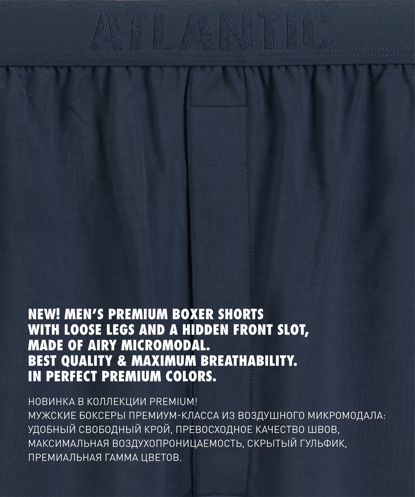 Мужские трусы-боксеры Atlantic MBX-662, сине-зеленого цвета. Модель премиального качества, выполнена из экологически чистого и современного материала - модала, который отличается легкостью, мягкостью и практичностью. Классический свободный крой обеспечивает идеальную посадку, свободу движений и комфорт при повседневной носке. Удобная пришивная, брендированная резинка из микрофибры с молочной нитью не сдавливает и не натирает кожу. Универсальная линия талии и длина до середины бедра сочетаются с любым стилем одежды. Широкая размерная сетка от S до 3XL. Стильная упаковка делает этот набор отличным подарком. Польский бренд Atlantic предлагает премиальное мужское белье для ценителей качества.