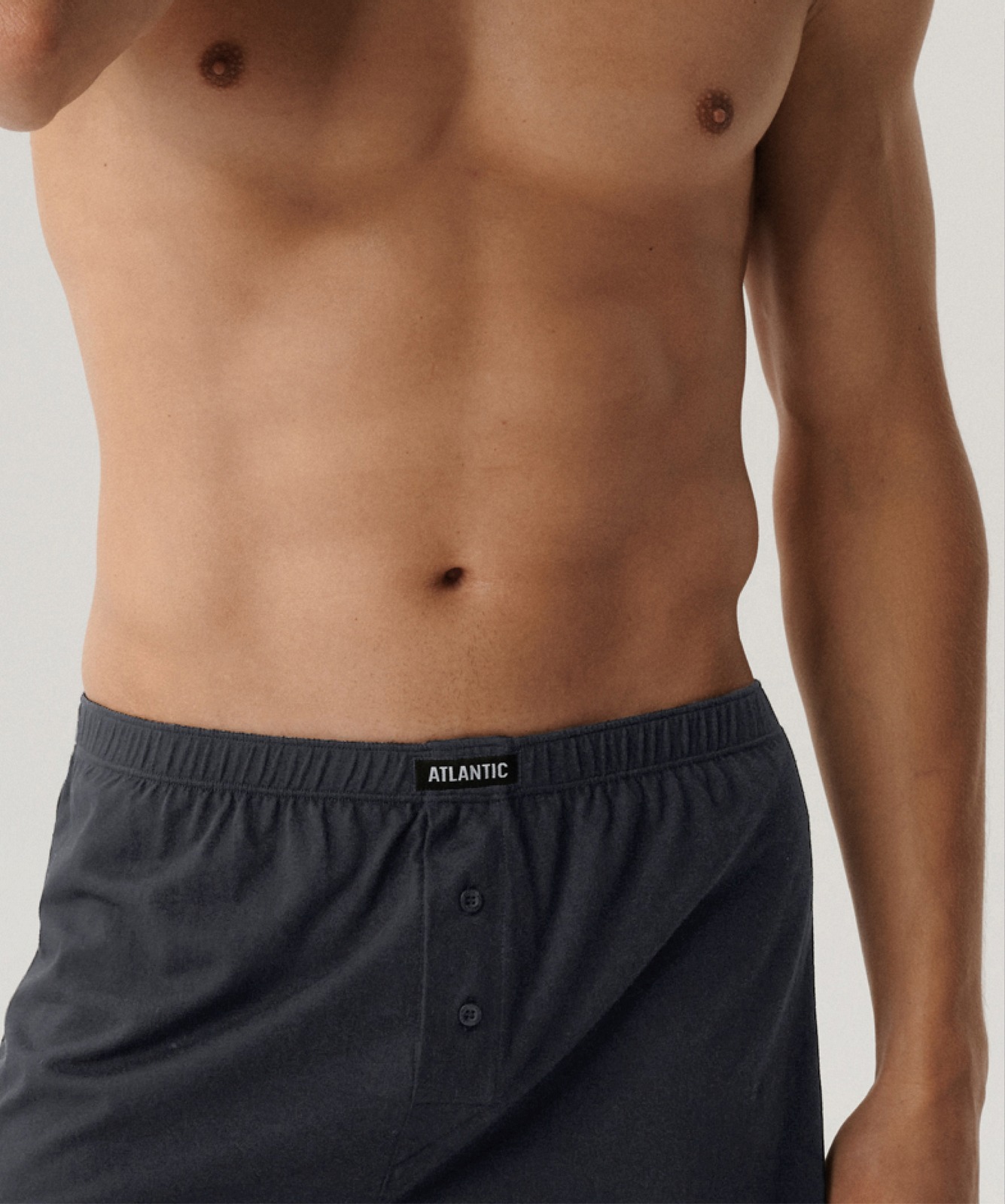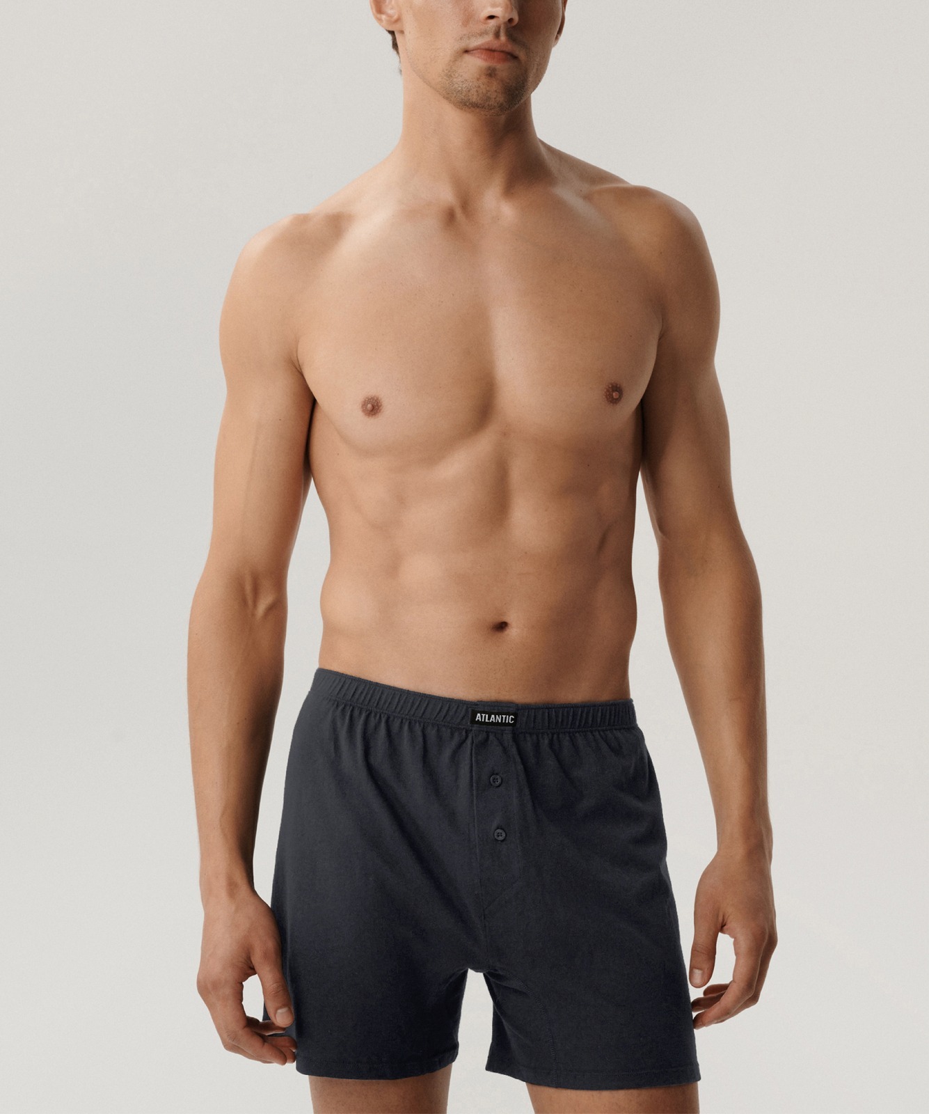 Набор из 2 шт. мужских трусов-боксеров Atlantic цвета графит из базовой коллекции. Коллекция Basic - это постоянная коллекция польского бренда Atlantic, включающая в себя как мужское, так и женское нижнее белье, выполненное в базовой цветовой гамме. Однотонные мужские трусы-боксеры 2BMB-003 от польского бренда Atlantic на каждый день: превосходно подойдут абсолютно любому мужчине как для повседневной носки, так и для занятий спортом. Классический свободный крой этой модели гарантирует идеальную посадку по фигуре, свободу движений и максимальный комфорт. Скрытая туннельная резинка не давит и не натирает при носке, а также обеспечивает контакт только с натуральным материалом. Свободные мужские боксеры имеют стандартную линию талии и штанины, доходящие до середины бедра, поэтому могут подойти к классическим брюкам или джинсам. В составе мужских семейных трусов используется мягкий, приятный на ощупь 100% хлопок. Трикотажное хлопковое полотно является прочным материалом, устойчивым к высоким температурам и растяжению, благодаря чему нижнее белье надолго сохраняет свой внешний вид и потребительские свойства. В упаковке представлено двое мужских боксерок в различных вариантах расцветок: от белого и серого меланжа до черного и графитового. Нижнее белье Атлантик будет превосходным подарком для мужчин всех возрастов: молодым парням и подросткам подойдут модели нижнего белья в яркой цветовой гамме и с паттерном или рисунком, более взрослым мужчинам - нижнее белье в сдержанных или строгих цветах, хотя иногда можно нарушить правила и поэкспериментировать. Кроме того, в нашем интернет-магазине Вы сможете приобрести трусы боксеры Атлантик 2BMB-003 из наличия по самым выгодным ценам. Широкая размерная сетка с самыми популярными (от S до XXL) и большими (3XL, 4XL) размерами, а также стильная фирменная упаковка нашего нижнего белья помогут однозначно сделать Вам верный выбор!