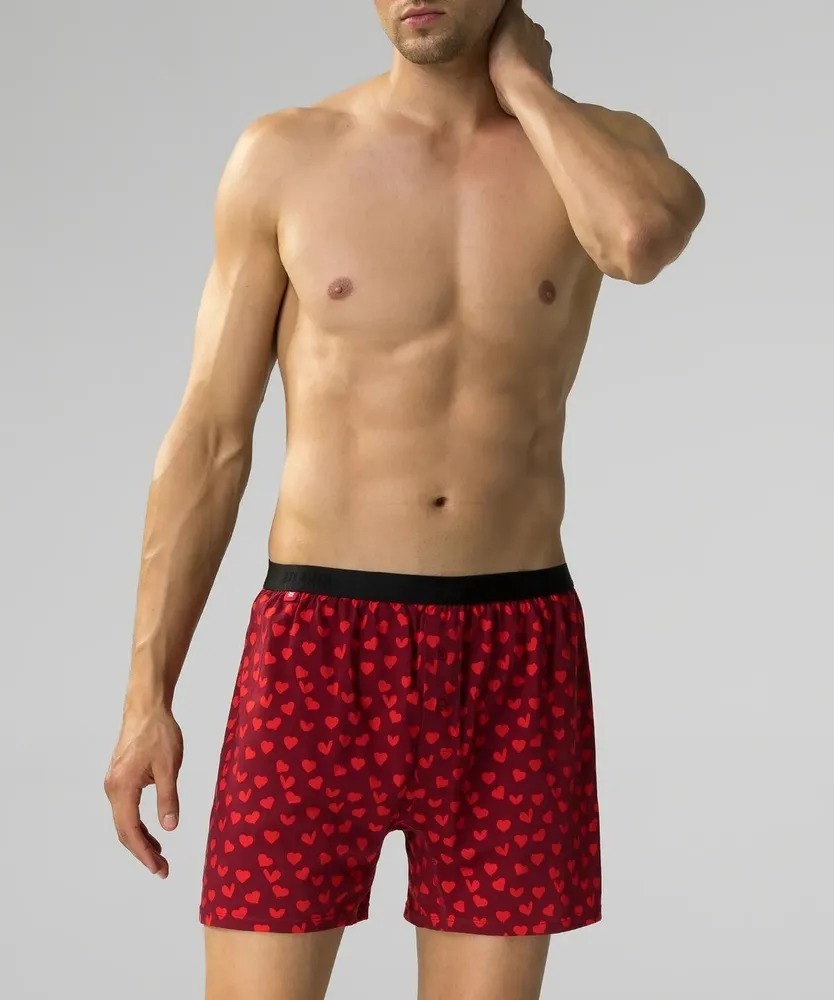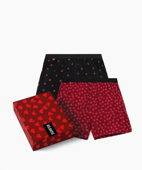Подарочный набор из 2 шт. мужских трусов-боксеров Atlantic цвета бургунди и черного из специальной лимитированной коллекции GIFTbox. Подарочная коллекция GIFTbox - это мужское нижнее белье с яркими, оригинальными и порой даже ироничными принтами. Белье из серии GIFTbox сразу же создаст восхитительное настроение и подарит незабываемые эмоции каждому мужчине. Мужские трусы-боксеры 2GMB-009 от польского бренда Atlantic на каждый день: превосходно подойдут абсолютно любому мужчине как для повседневной носки, так и для занятий спортом. Классический свободный крой этой модели гарантирует идеальную посадку по фигуре, свободу движений и максимальный комфорт. Внешняя пришивная резинка не давит, не скручивается и не натирает при носке. Свободные мужские боксеры имеют стандартную линию талии и штанины, доходящие до середины бедра, поэтому могут подойти к классическим брюкам или джинсам. В составе мужских семейных трусов используется мягкий, приятный на ощупь 100% хлопок. Трикотажное хлопковое полотно является прочным материалом, устойчивым к высоким температурам и растяжению, благодаря чему нижнее белье надолго сохраняет свой внешний вид и потребительские свойства. В упаковке представлено двое мужских боксерок в следующих расцветках: черные с ярким и игривым рисунком в виде роз; бургунди с рисунком красных сердец, что делает данную модель особенным и идеальным подарком не только в День Святого Валентина, но и на Новый Год или даже в День рождения. Брендированная резинка из микрофибры не только обеспечивает приятные тактильные ощущения для кожи, но и придает особый шарм этому нижнему белью, благодаря наличию вышивки в виде сердец на поясе. А подарочная упаковка, выполненная в виде одного из принтов данного набора мужского нижнего белья, лишь закрепляет статус данной модели в качестве самого идеального подарка. Нижнее белье Атлантик будет превосходным подарком для мужчин всех возрастов: молодым парням и подросткам подойдут модели нижнего белья в яркой цветовой гамме и с паттерном или рисунком, более взрослым мужчинам - нижнее белье в сдержанных или строгих цветах, хотя иногда можно нарушить правила и поэкспериментировать