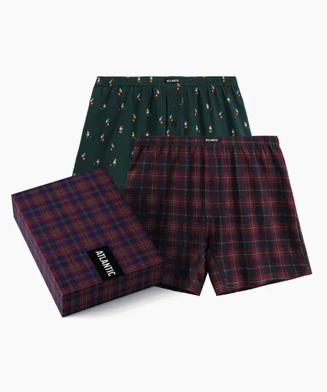 Подарочный набор из двух пар мужских трусов-боксеров Atlantic темно-зеленого и темно-синего цвета из лимитированной коллекции GIFTbox — идеальное решение для подарка. Это нижнее белье с яркими и оригинальными принтами создаст прекрасное настроение и подарит незабываемые эмоции. Модель 2GMB-013 от польского бренда Atlantic подойдет для повседневной носки и занятий спортом. Классический свободный крой обеспечивает идеальную посадку и свободу движений. Скрытая туннельная резинка не давит и не натирает, контактируя с телом только через мягкий натуральный материал. Длина штанин до середины бедра позволяет носить боксеры с любыми брюками и джинсами. Трусы выполнены из 100% хлопка — прочного, дышащего материала, устойчивого к растяжению и высоким температурам, что гарантирует сохранение формы и внешнего вида после многократных стирок. Доступны размеры от S до XXL, а также большие размеры 3XL и 4XL. Стильная фирменная упаковка с оригинальным принтом делает набор готовым подарком для мужчин любого возраста.