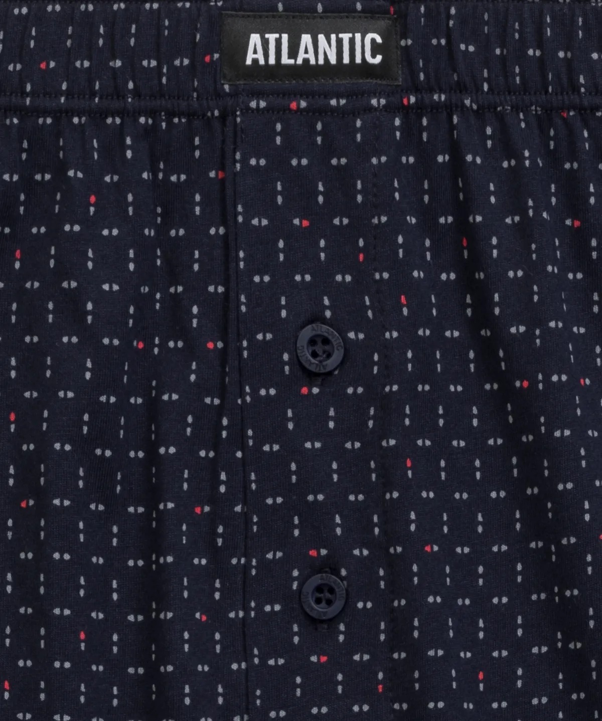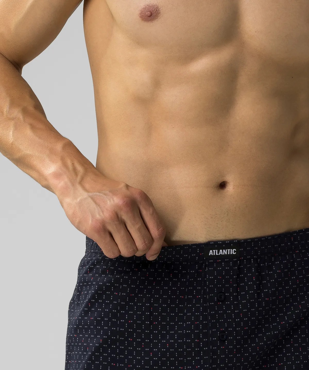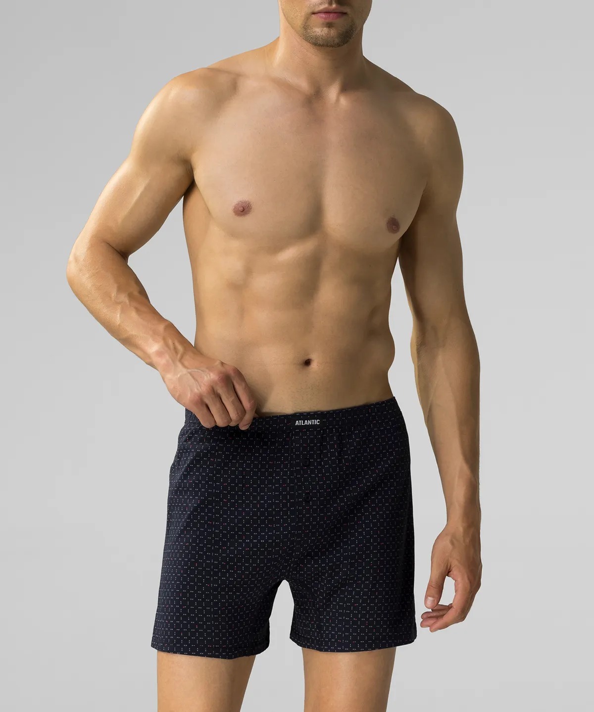 Набор из 2 шт. мужских трусов-боксеров Atlantic темно-синего и голубого цвета. Мужские трусы-боксеры 2MBX-062 от польского бренда Atlantic на каждый день: превосходно подойдут абсолютно любому мужчине как для повседневной носки, так и для занятий спортом. Классический свободный крой этой модели гарантирует идеальную посадку по фигуре, свободу движений и максимальный комфорт. Скрытая туннельная резинка не давит и не натирает при носке, а также обеспечивает контакт только с натуральным материалом. Свободные мужские боксеры имеют стандартную линию талии и штанины, доходящие до середины бедра, поэтому могут подойти к классическим брюкам или джинсам. В составе мужских семейных трусов используется мягкий, приятный на ощупь 100% хлопок. Трикотажное хлопковое полотно является прочным материалом, устойчивым к высоким температурам и растяжению, благодаря чему нижнее белье надолго сохраняет свой внешний вид и потребительские свойства. В упаковке представлено двое мужских боксерок в темно-синей и голубой расцветках с мелкими классическим принтом. Нижнее белье Атлантик будет превосходным подарком для мужчин всех возрастов: молодым парням и подросткам подойдут модели нижнего белья в яркой цветовой гамме и с паттерном или рисунком, более взрослым мужчинам - нижнее белье в сдержанных или строгих цветах, хотя иногда можно нарушить правила и поэкспериментировать.