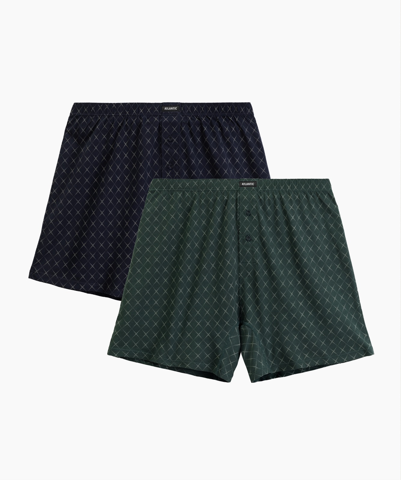 Набор из 2 мужских трусов-боксеров Atlantic 2MBX-077 — стиль и комфорт в тёмно-синем и зелёном цвете. Набор из двух трусов разной расцветки с классическим принтом в виде контрастной клетки. Повседневная модель трусов с застежкой на пуговицах. Свободный крой со стандартной линией талии и удлиненными штанинами обеспечивает идеальную посадку и свободу движений. Мягкий 100% хлопок и скрытая туннельная резинка гарантируют комфорт при ежедневной носке. Прочный материал сохраняет форму и цвет после множества стирок. Размерная сетка от S до 4XL подойдет мужчинам любого телосложения. Стильная упаковка делает набор отличным подарком. Atlantic 2MBX-077 — отличный выбор для тех, кто ценит качество и удобство в повседневной жизни.