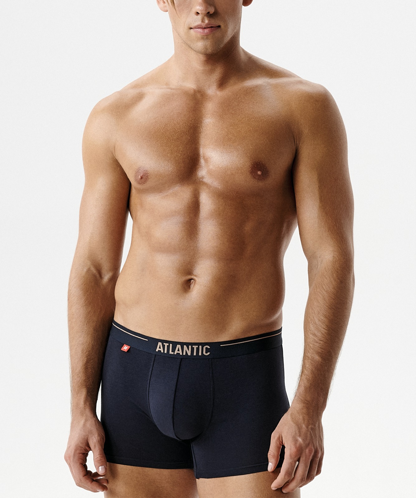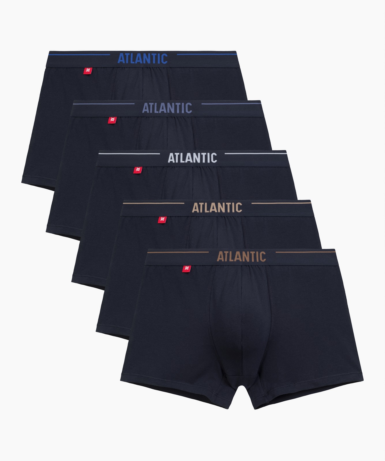 Набор из 5 шт. мужских трусов-шорт Atlantic темно-синего цвета. Мужские однотонные трусы-шорты 5SMH-004 от польского бренда Atlantic на каждый день: превосходно подойдут абсолютно любому мужчине как для повседневной носки, так и для активного занятия спортом (например, бега, фитнеса или силовых нагрузок). Спортивный крой этой модели гарантирует идеальную посадку по фигуре и максимальный комфорт. Внешняя пришивная резинка не давит, не скручивается и не натирает при носке. Облегающие мужские трусы шорты имеют среднюю линию талии, штанины стандартной длины и профилированный гульфик, поэтому могут подойти к любому типу одежды. В составе используется мягкий, приятный на ощупь хлопок в сочетании с эластаном. В упаковке представлено пять шорт в темно-синем цвете и с брендированной резинкой в различных вариантах расцветок, сделанной из микрофибры. Нижнее белье Атлантик будет превосходным подарком для мужчин всех возрастов. Широкая размерная сетка с самыми популярными (от S до XXL) размерами, а также стильная фирменная упаковка нашего нижнего белья помогут однозначно сделать Вам верный выбор!