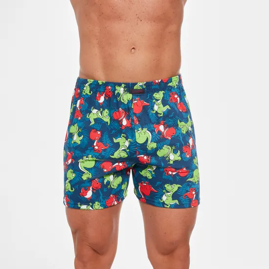 Классические свободные боксерки выполнены из 100% мягкого хлопкового полотна, обогащенного забавным рисунком (весёлые динозаврики). В поясе проходит широкая резинка, которая обеспечивает идеальную посадку модели на конкретной фигуре. На гульфике крохотная пуговичка. Материал выдерживает многократные стирки, не меняя цвета и не растягиваясь. Имеют отдельную упаковку в виде картонной коробки. Состав: 100% хлопок Произведено в Польше.