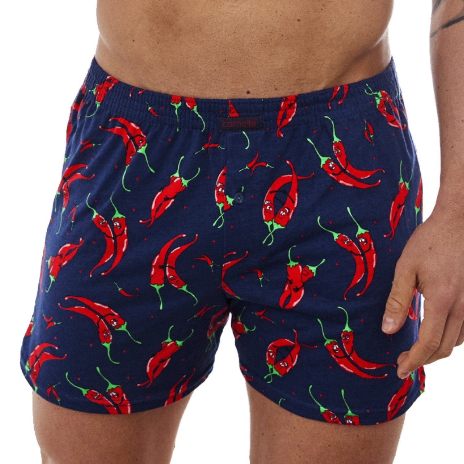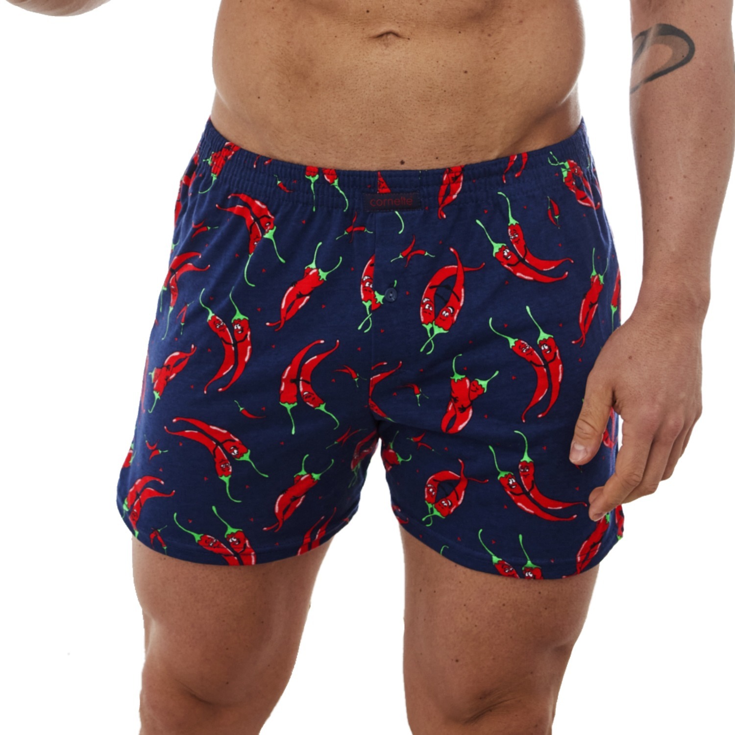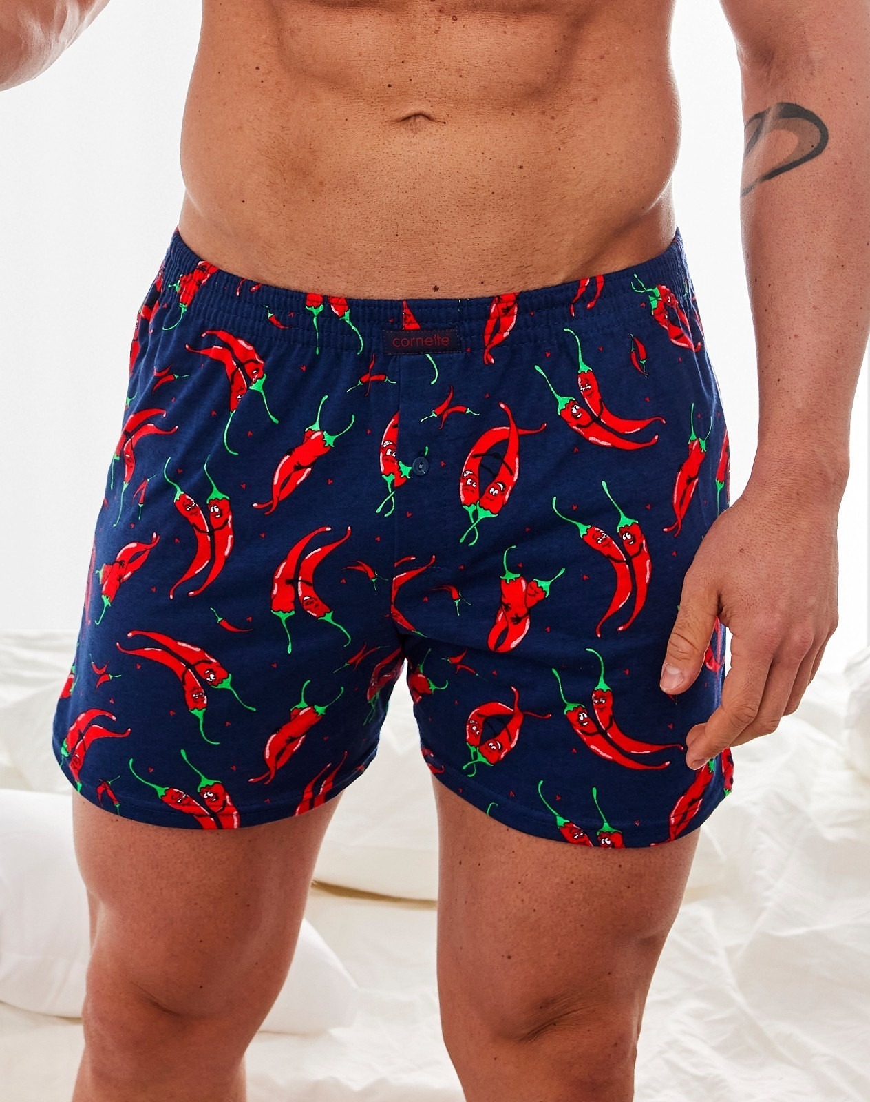 Классические свободные боксерки выполнены из 100% мягкого хлопкового полотна, обогащенного забавным рисунком (перцы-чили). В поясе проходит широкая резинка, которая обеспечивает идеальную посадку модели на конкретной фигуре. На гульфике крохотная пуговичка. Материал выдерживает многократные стирки, не меняя цвета и не растягиваясь. Имеют отдельную упаковку в виде картонной коробки. Состав: 100% хлопок.