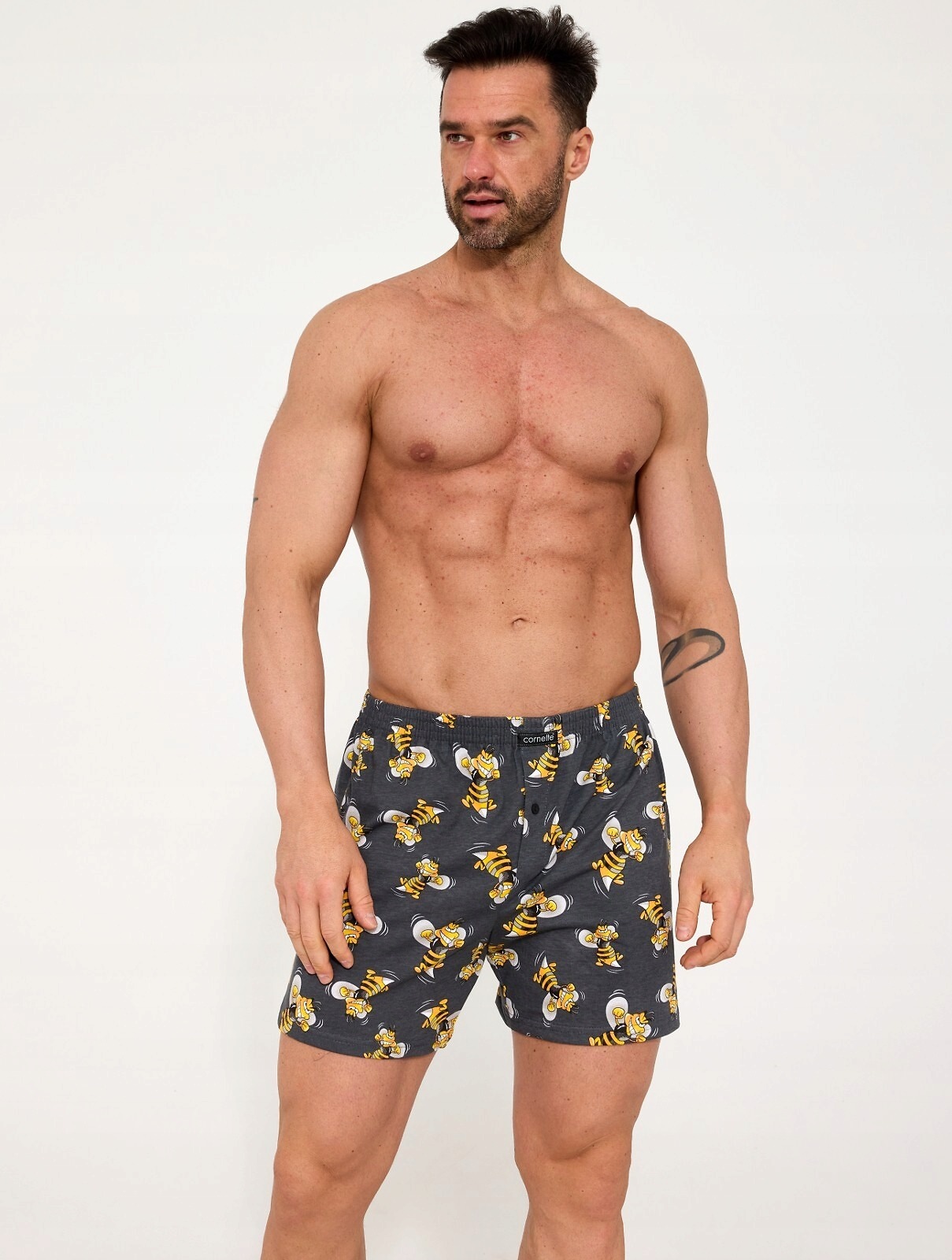 Классические свободные боксерки выполнены из 100% мягкого хлопкового полотна, обогащенного забавным рисунком . В поясе проходит широкая резинка, которая обеспечивает идеальную посадку модели на конкретной фигуре. На гульфике крохотная пуговичка. Материал выдерживает многократные стирки, не меняя цвета и не растягиваясь. Имеют отдельную упаковку в виде картонной коробки. Состав: 100% хлопок Произведено в Польше.