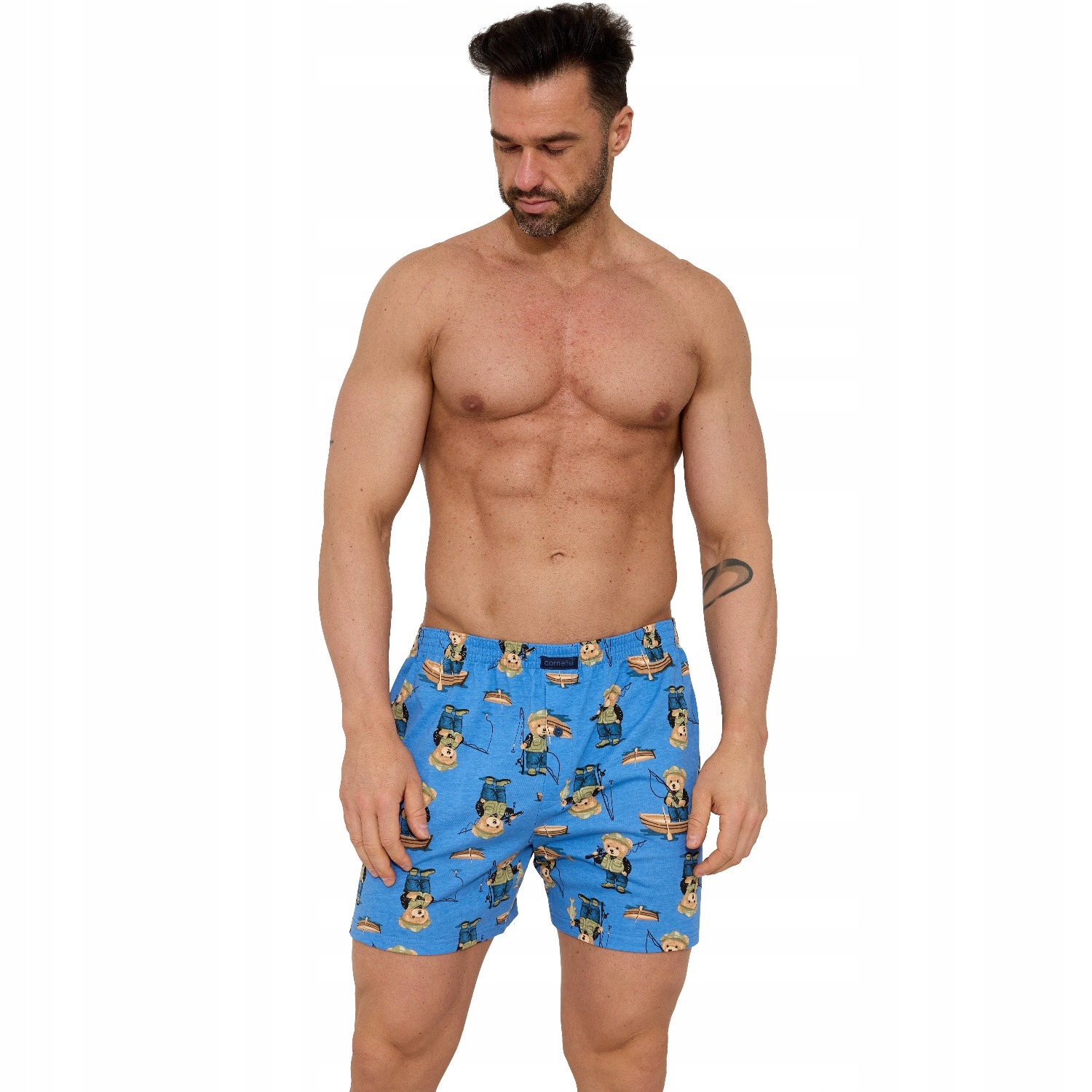 Классические свободные боксерки выполнены из 100% мягкого хлопкового полотна, обогащенного забавным рисунком . В поясе проходит широкая резинка, которая обеспечивает идеальную посадку модели на конкретной фигуре. На гульфике крохотная пуговичка. Материал выдерживает многократные стирки, не меняя цвета и не растягиваясь. Имеют отдельную упаковку в виде картонной коробки. Состав: 100% хлопок Произведено в Польше.