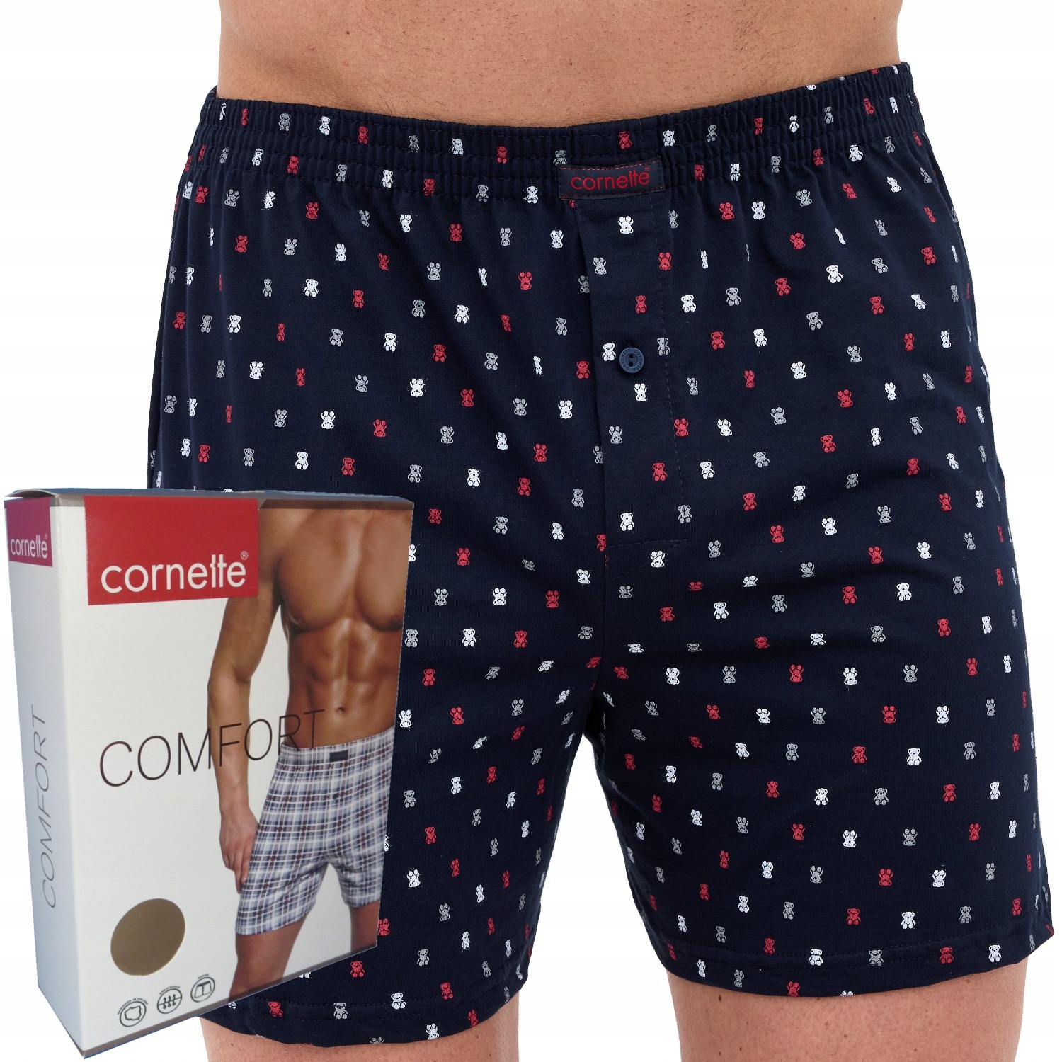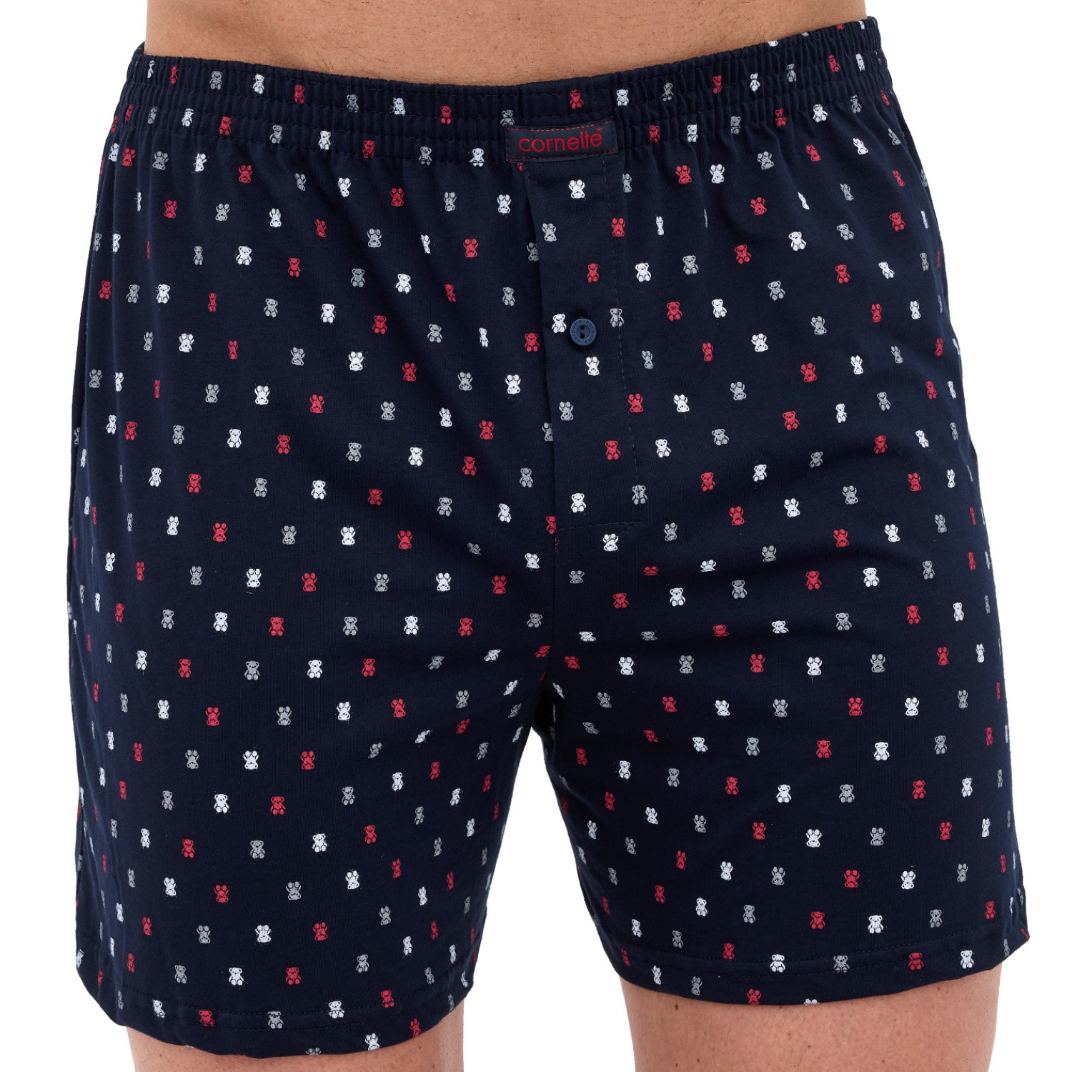 Классические свободные боксерки выполнены из 100% мягкого хлопкового полотна. Трусы в темно-синего цвета с геометрическим рисунком (мишки). В поясе проходит широкая резинка, которая обеспечивает идеальную посадку модели на конкретной фигуре. На гульфике крохотная пуговичка. Материал выдерживает многократные стирки, не меняя цвета и не растягиваясь. Имеют отдельную упаковку в виде картонной коробки. Состав: 100% хлопок. Произведено в Польше.