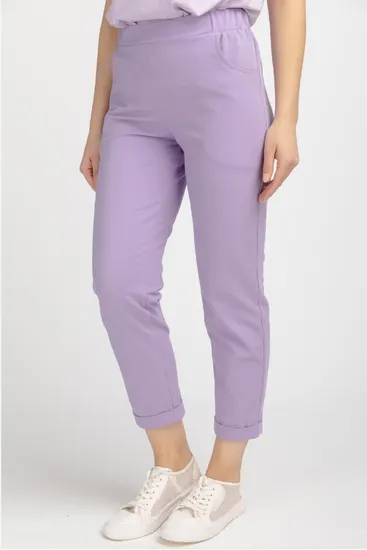Зауженные брюки с карманами, из хлопкового полотна джинскотт. Пояс с планкой и эластичной лентой внутри. По низу брюк манжеты.