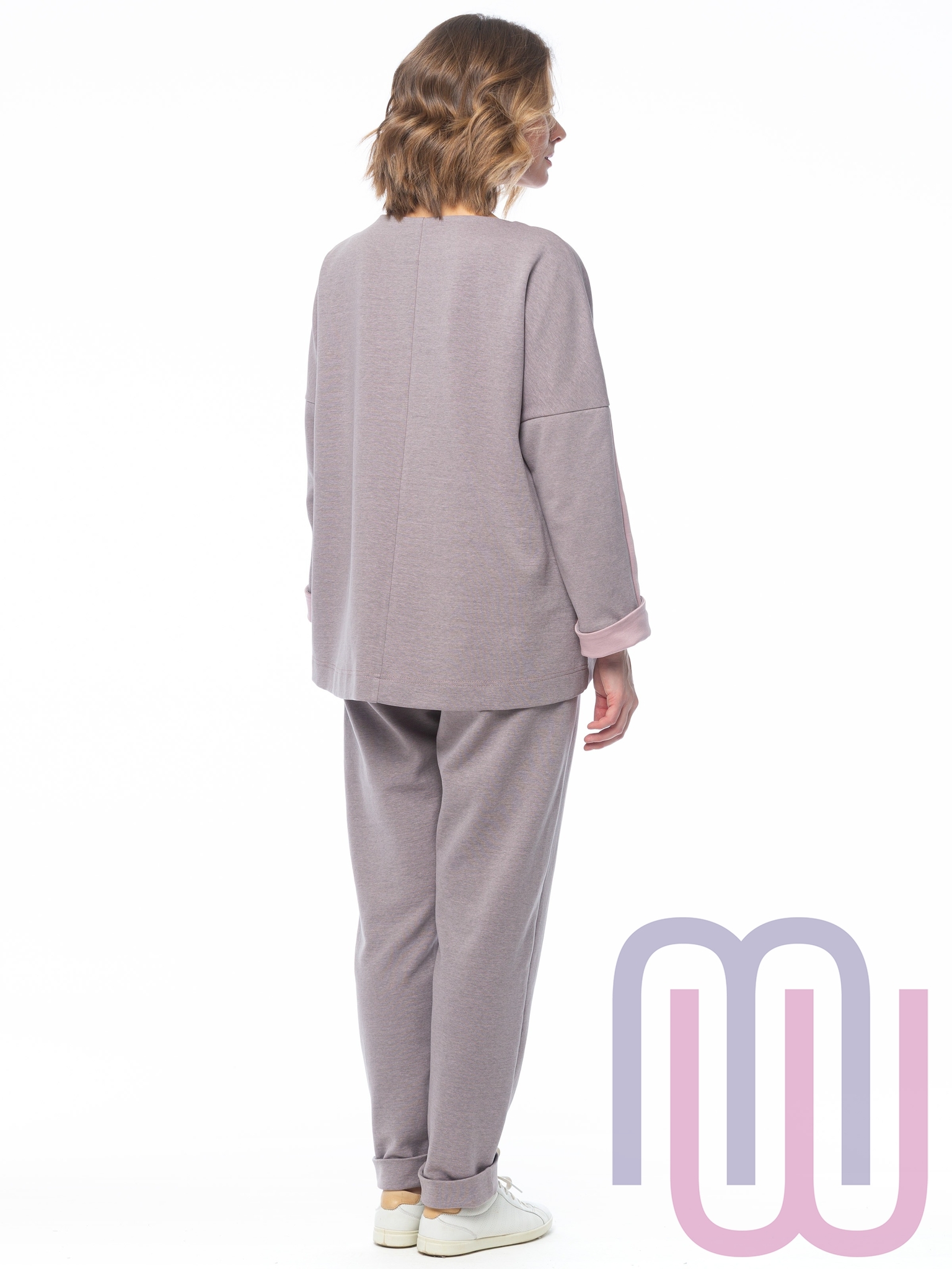 Брюки длинные прямого силуэта, подвернутые к низу, с внутренними карманами в боковых швах.