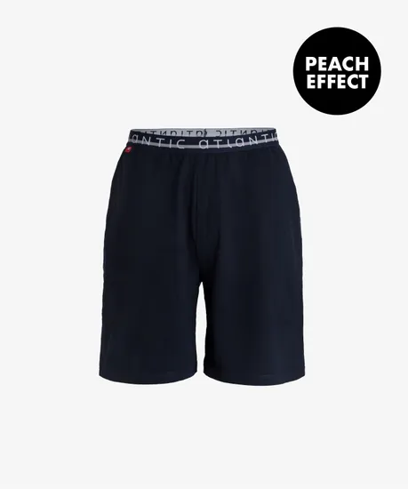 Коллекция одежды для сна от бренда Atlantic - это идеальный выбор любого мужчины, который ценит высочайшее качество, максимальный комфорт и удобство. Мужские пижамные шорты NMB-041 подойдут для повседневной домашней носки абсолютно любому мужчине. Классический фасон, свободный крой, штанины средней длины, практичные карманы по бокам, эластичная внешняя брендированная резинка обеспечивает идеальную посадку в области талии. Изготовлены из приятного и мягкого на ощупь высококачественного 100% хлопка с бархатистым эффектом ""Peach Effect"". Доступные расцветки: серый меланж и тёмно-синий.