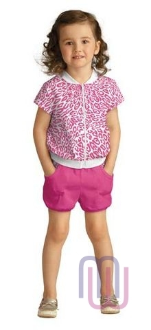 Оригинальный и красивый комплект для девочек Pelican состоит из футболки на молнии и шорт.