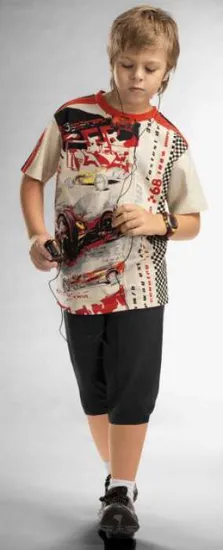 Комплект для мальчиков состоит из футболки с коротким рукавом и бридж.