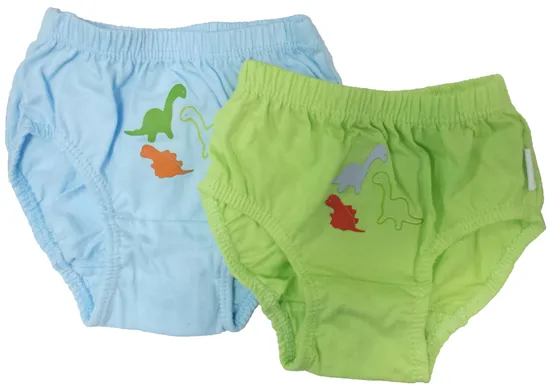 Трусики для грудничков, изготовлены из 100% хлопка с мягкой эластичной резинкой. В коробке две штуки одного размера, однотонные с красивым принтом динозаврики. Натуральный хлопок, из которого изготовлены трусики, легкий и приятный к телу материал, выдерживает многократные стирки, не меняя цвета и не растягиваясь.
