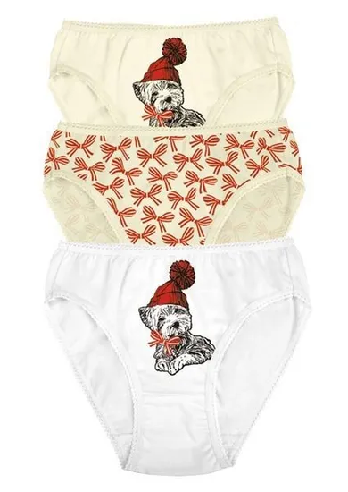 Трусики для девочек, изготовлены из 100% хлопка с мягкой эластичной резинкой. В коробке три штуки одного размера, однотонные с красивыми принтами. Натуральный хлопок, из которого изготовлены трусики, легкий и приятный к телу материал, выдерживает многократные стирки, не меняя цвета и не растягиваясь.