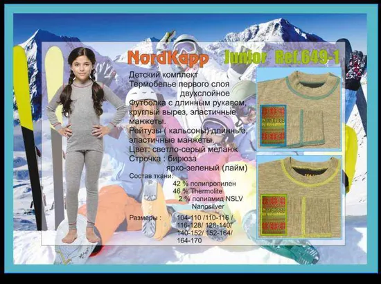 Двухслойное термобелье, фуфайка и кальсоны, предназначено для высокой активности в холодных погодных условиях. Thermolite - является лучшим изолятором и более эффективно поддерживает тепло, очень малый вес благодаря полой структуре, высыхает на 20% быстрее других изоляционных тканей и на 50% быстрее хлопка, хорошо стирается и не дает усадку. Nanosilver (Polyamide NSLV) - антибактериальная обработка микроволокна серебром кардинально отличается от традиционных методов добавления серебра в ткань и основана на пропитке ткани ионами серебра. В отличии от технологии пропитки, когда ионы серебра наносятся на поверхность микроволокна и сравнительно быстро вымываются из ткани, технология Nanosilver обеспечивает присутствие нано-частиц серебра непосредственно в структуре полимера, из которого сделано микроволокно. Эти частицы невозможно удалить и они всегда контактируют с поверхностью, нейтрализуя процесс размножения бактерий.