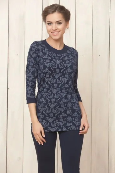 Женский комплект Nic Club Enjoy 1406 состоящий из джемпера и брюк. Джемпер сшит из принтованного трикотажа высокого качества, а манжет и обтачка горловины — из однотонного. Брюки Nic Club enjoy 1406 из однотонного трикотажа, которые прилегают на бедрах, а чуть ниже — прямые.