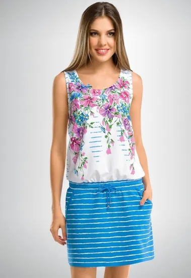 Платье без рукав, с U-образным вырезом, карманами по бокам, принтом ""цветы"". Состав: 93% хлопок, 7% эластан.