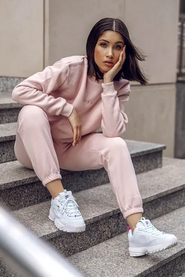 Свитшот oversize DK01 05 пудрово-розового цвета с фирменным логотипом спереди. Вырез горловины, рукава и нижняя кромка отделаны трикотажной резинкой.