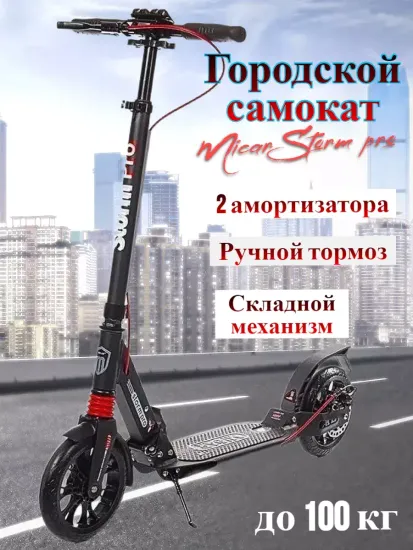 Складной самокат с двумя амортизаторами и ручным дисковым тормозом заднего колеса Micar Storm Pro 200 мм подходит как для детей в возрасте от 6-7 лет, так и для взрослых до 100 кг. Складной самокат Micar Storm Pro с большими колёсами 200 мм и двумя амортизаторами на переднем и заднем колесе сделают катание на самокате максимально комфортным. Руль самоката легко регулируется по высоте и надёжно фиксируется благодаря специальному зажиму на ручке самоката. Scooter Micar Storm Pro 200 мм легкий и поэтому идеально подходит для детей младшего возраста, поскольку незначительный вес позволяет переносить его через тротуар и ступени без посторонней помощи. Городской самокат оснащён ручным дисковым тормозом заднего колеса, а также удобным педальным тормозом-крылом, расположенным над задним колесом самоката. Вы и ваш ребёнок будет наслаждаться комфортным катанием на новом самокате с большими колёсами Micar Storm Pro 200 мм, купить который вы можете в нашем интернет-магазине в Москве.