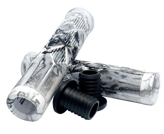 Мягкие двухцветные грипсы для самокатов и велосипедов с рисунком "ромб". Длина 140 мм, посадочный диаметр 20 мм.