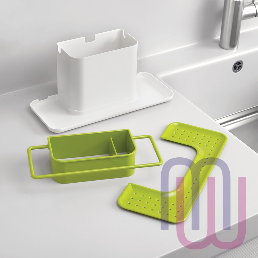 С этим практичным предметом процесс мытья посуды становится продуманным как никогда раньше. Вместительная основная ёмкость предназначена для хранения щёток и бутылок со средствами для мытья. На вешалке, расположенной вдоль её внешнего края, удобно сушить небольшие тряпки. Широкий поддон с отверстиями предоставляет место для просушивания губок, а скрывающийся под ним резервуар аккуратно собирает стекающую воду. Органайзер легко собирается и разбирается для чистки. Можно мыть в посудомоечной машине.