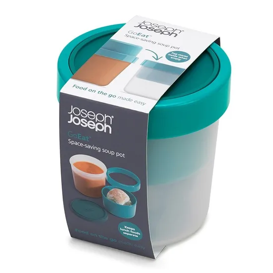 Контейнер с двумя отделениями позволяет переносить составляющие перекуса в раздельных герметичных секциях. В этом ланч-боксе – идеальном для пикников и обедов навынос – можно перевозить самые разные продукты: от йогурта с гранолой до овощей с соусами. Продуманные крышки и блокирующее кольцо надежно защитят содержимое от протекания. В пустом состоянии обе части ланч-бокса компактно складываются одна в другую, чтобы сэкономить место в вашей сумке. Можно мыть в посудомоечной машине. Контейнер и крышки можно разогревать в микроволновой печи, предварительно удалив блокирующее кольцо