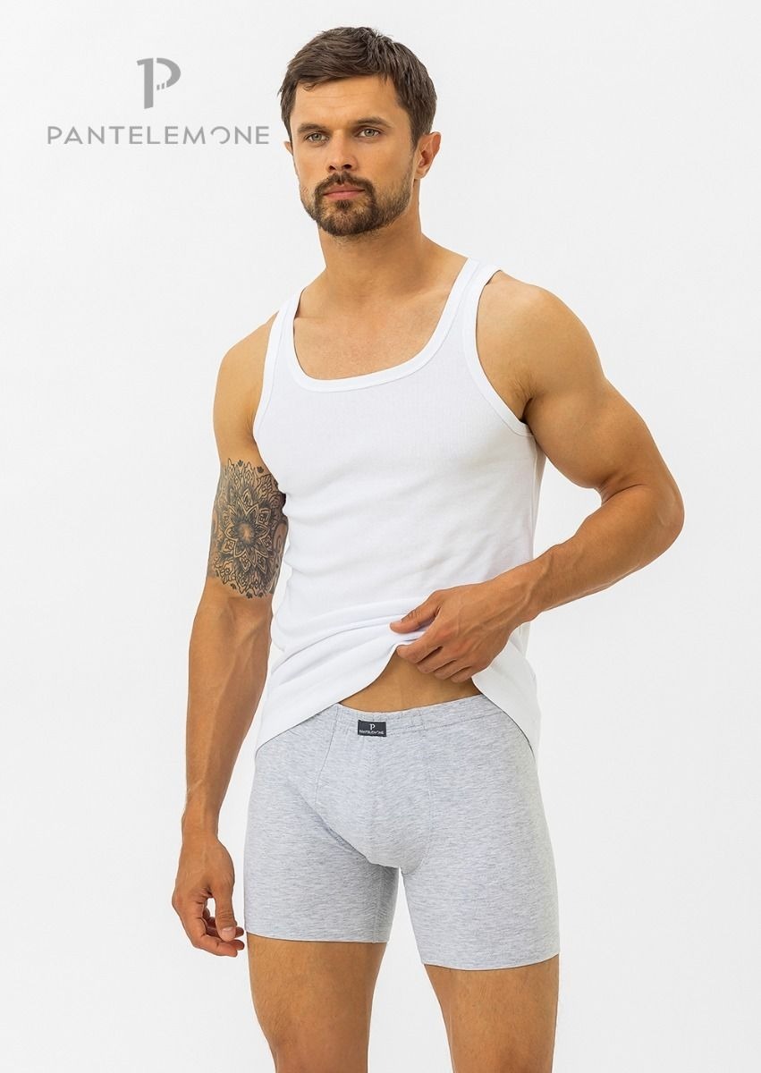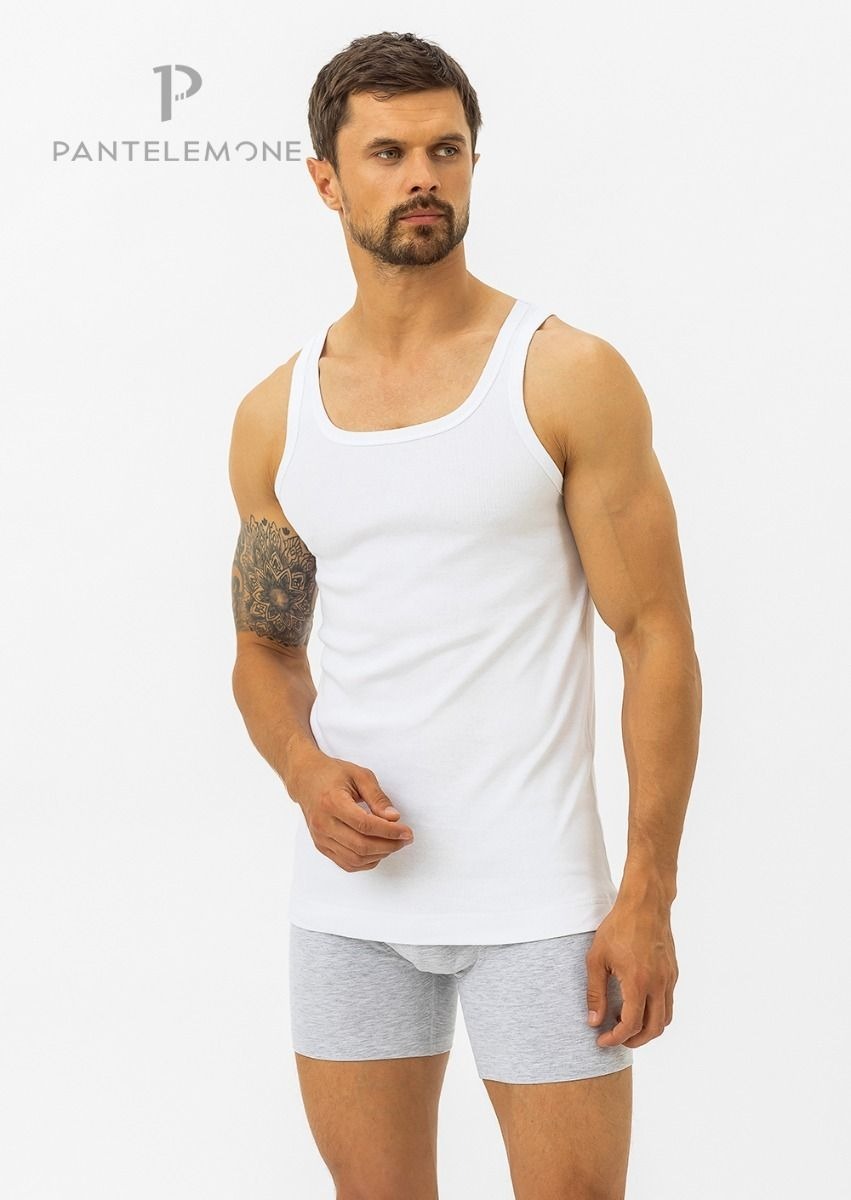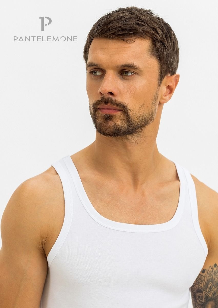 Мужская майка облегающего силуэта на узких бретелях, предназначенная для повседневной роски.