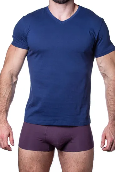 Мужская футболка T761-4 с коротким рукавом и V-образным вырезом горловины, выполнена из хлопка с добавлением лайкры.