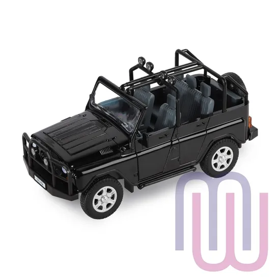 Металлическая лицензионная машинка УАЗ-469 - уменьшенная копия известного внедорожника, который можно эксплуатировать практически в любых условиях.Машинка прекрасно дополнит игрушечный автопарк и сделает игру более увлекательной.Модель машинки детально проработана и имеет узнаваемый дизайн кузова легендарного ""Уазика"". Ей покорится любое бездорожье, любое ралли.Модель выполнена в масштабе 1:24, у нее открываются передние двери, капот и дверки на кузове. Если откатить автомобиль немного назад и отпустить, он поедет вперед.При нажатии на корпус включается звук мотора и загораются фары, при открытии дверей включается звук сигнализации и загораются фары.Ребенок будет с удовольствием катать такую машинку дома и на улице. Игрушка развивает скорость реакции, мелкую моторику, пробуждает интерес к технике.Автомобиль также может быть интересен взрослым коллекционерам.
