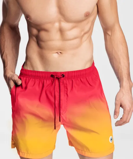 Классические мужские пляжные шорты KMB-193 от Atlantic - обязательная деталь мужского гардероба в сезон летних отпусков, которая позволит создать свой собственный идеальный пляжный образ, удивить окружающих чувством стиля и нетривиальностью. Спортивный фасон, стандартная длина, практичные карманы по бокам, внутри подкладка для комфортного использования, эластичный пояс с регулировкой на шнуровке позволяет индивидуально регулировать размер. Изготовлены из лёгкого и быстросохнущего полиэстера. Доступные расцветки: красный и голубой. Отличительная особенность данной модели: градиентный переход цвета от более темного к более светлому оттенку и скрытый принт ""Акулы""