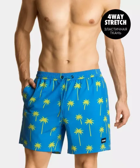 Мужские пляжные бордшорты имеют стандартную посадку по талии и штанины средней длины, внутри пляжных шорт вшита подкладка для более комфортного использования во время носки. В составе используется легкий и быстросохнущий полиэстер в сочетании с эластаном. Полиэстер является высокопрочным, приятным на ощупь, синтетическим волокном, которое не деформируется и не мнется. Такая ткань отличается устойчивостью к солнечному свету и не выцветает. Изделия из этого материала не садятся и не растягиваются после многих стирок, а также очень быстро сохнут и практически не требуют глажки после стирки. Эластан добавляет эластичность и обеспечивает отличную посадку по фигуре.