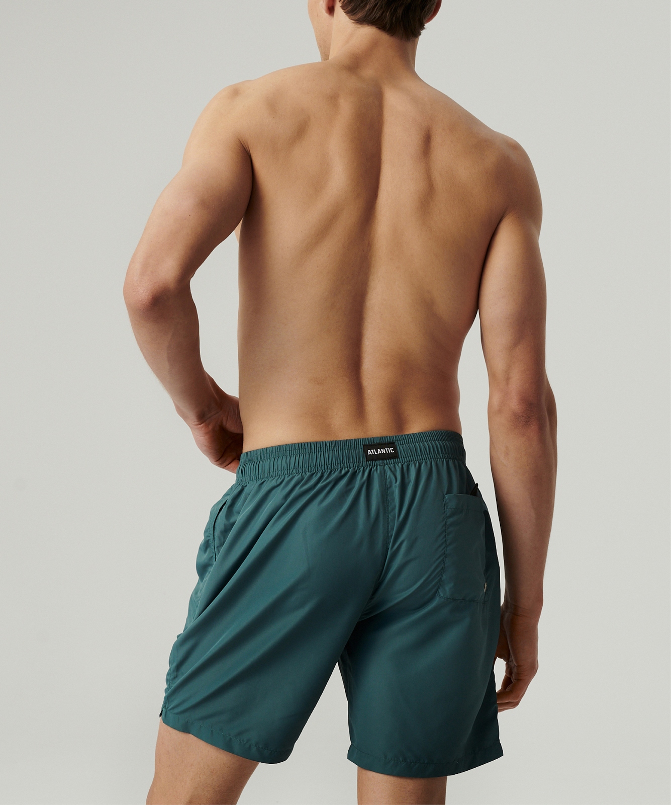 Пляжные шорты мужские Atlantic изумрудного цвета из новой летней коллекции. Коллекция Beachwear - это мужская пляжная одежда, созданная для того, чтобы преобразить летний гардероб каждого мужчины в сезон отпусков и летнего отдыха, создать свой собственный идеальный пляжный образ, благодаря уникальному дизайну, и удивить окружающих чувством стиля и нетривиальностью. Классические однотонные мужские пляжные шорты KMB-223 от польского бренда Atlantic превосходно подойдут каждому мужчине как во время пассивного отдыха на пляже, так и во время активного занятия пляжными и водными видами спорта. Свободный крой этой модели гарантирует идеальную посадку по фигуре, свободу движений и максимальный комфорт. Мужские прогулочные шорты дополнены эластичным поясом со шнуровкой снаружи для регулировки размера в области талии и оснащены практичными и функциональными карманами по бокам. Мужские пляжные бордшорты имеют стандартную посадку по талии и штанины средней длины, внутри пляжных шорт вшита подкладка для более комфортного использования во время носки. В составе используется легкий и быстросохнущий 100% полиэстер. Полиэстер является высокопрочным, приятным на ощупь, синтетическим волокном, которое не деформируется и не мнется. Такая ткань отличается устойчивостью к солнечному свету и не выцветает. Изделия из этого материала не садятся и не растягиваются после многих стирок, а также очень быстро сохнут и практически не требуют глажки после стирки. Данная модель мужских пляжных шорт представлена несколькими вариантами цвета. Купальная и пляжная коллекции Атлантик (купальные плавки, плавательные шорты, прогулочные бордшорты) будут превосходным подарком для мужчин всех возрастов: молодым парням и подросткам подойдут модели в яркой цветовой гамме и с паттерном или рисунком, более взрослым мужчинам - в сдержанных или строгих цветах, хотя иногда можно нарушить правила и поэкспериментировать.