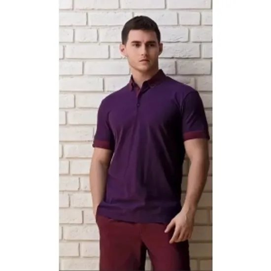 Рубашка-поло, футболка полуприталенного силуэта, застежка на пуговицах, с отложным воротником из текстиля, манжеты на рукавах из текстиля на пуговицах. Состав: 100% хлопок.