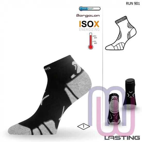 Бег – один из способов передвижения, который, по совместительству, является лучшим вариантом тренировки сердечно-сосудистой системы. Также, данный вид физической активности предрасполагает к ускорению обмена веществ, что позитивно сказывается на состоянии кожных покровов, иммунной системы и организма в целом. Для занятий бегом нужно минимум экипировки, однако эта одежда должна быть качественной, удобной и иметь некоторые необходимые качества. Например, термобелье для бега должно хорошо отводить тепло, влагу и обеспечивать должную циркуляцию воздуха. Также, для комфортных и продолжительных занятий, каким-либо спортом без неприятных ощущений, термобелье должно иметь в составе антибактериальные волокна, которые воспрепятствуют развитию всевозможных микроорганизмов и грибков, тем самым обеспечивая отсутствие неприятных запахов. Соответственно, в таком деле важна не только верхняя одежда, ведь ваши стопы также испытывают чрезмерную нагрузку, потеют и нуждаются в качественных носках, способных обеспечить все необходимые условия. Модель термоносков RUN 901 бренда Lasting была создана специально с учётом всех потребностей и нюансов, которые возникают при активных занятиях спортом. Именно поэтому для носков RUN 901 используются исключительно синтетические материалы, в том числе и COOLMAX. Этот материал известен довольно давно и обладает отличными влагоотводящими свойствами, сохраняя вашу кожу сухой и не позволяя влаге надолго задерживаться на коже. Благодаря сетчатой структуре, носки Lasting RUN 901 создают эффект «дышащей» поверхности, что позитивно сказывается на температуре ног, препятствуя их перегреву. А двухслойное покрытие в области пятки и носка обеспечивает термоноскам RUN 901 высокую долгове чность и стойкость к нагрузкам.