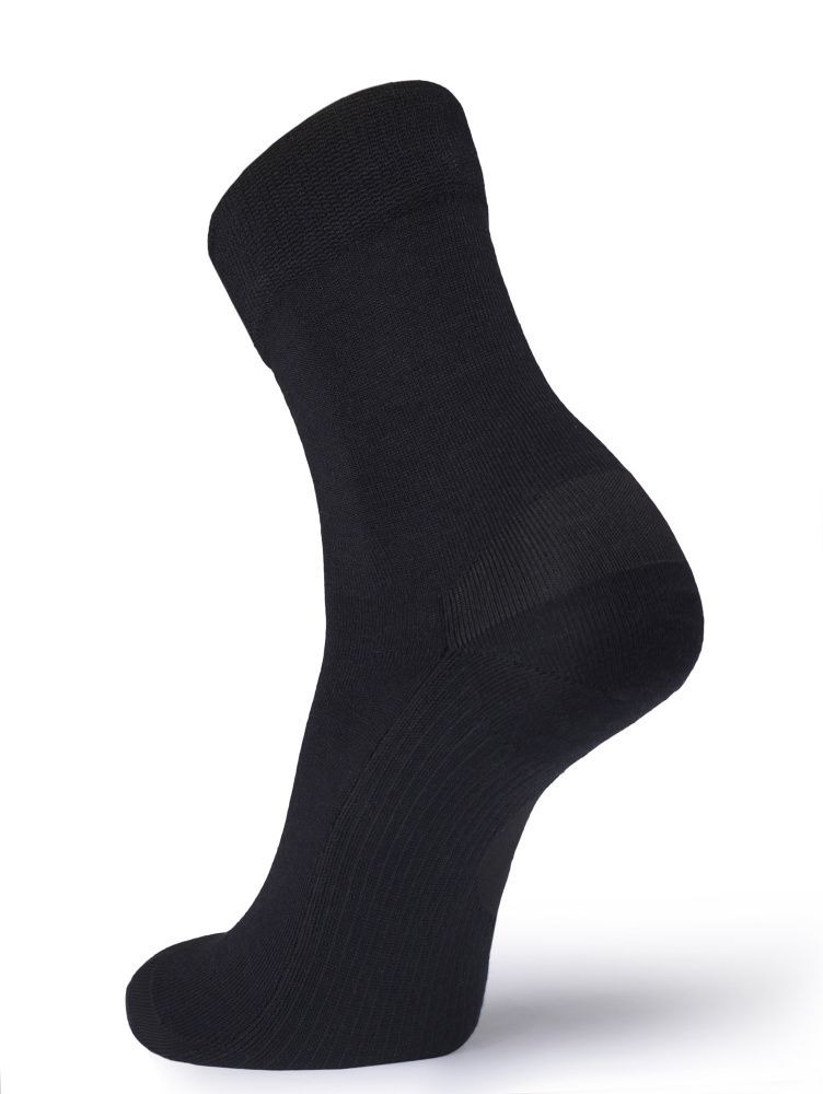 Пряжа носков на 100% состоит из натуральной шерсти мериносов. Способность к терморегуляции - отличное свойство мериносовой шерсти. Не согревая сама по себе, шерсть мериносов аккумулирует собственное тепло тела человека, возвращая его коже и предотвращая теплопотерю. Термоноски достаточно высоки, чтобы полностью закрывать щиколотку и лодыжку. Манжета представляет собой широкую и плоскую анатомическую резинку, которая не препятствует нормальному кровообращению, но надёжно удерживает носок на ноге, не давая ему сползти.