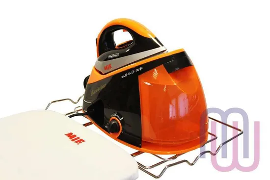 Парогенератор с утюгом MIE STIRO PRO 100 INOX от компании MIE - это выносливый и мощный парогенератор в корпусе из нержавеющей стали. Парогенератор MIE STIRO PRO 100 INOX - высокотехнологичный продукт с хорошими техническими характеристиками, он подходит для профессионального использования и для использования в домашних условиях. Парогенератор MIE STIRO PRO INOX позволяет разглаживать любые ткани, даже самые устойчивые к тепловой обработке, так, как он подает пар под давлением в 4 Бара. А в сочетании с работой профессионального утюга такой мощный пар на 100% проникает в волокна ткани, распрямляя и разглаживая их. Парогенератор превосходно отгладит сложенные в несколько слоев столовое и постельное белье, полотенца и покрывала. До шести слоев ткани одновременно идеально разглаживаются при работе STIRO PRO 100 INOX. Навести стрелки на брюках, отгладить мужские сорочки, льняные и джинсовые изделия, шерстяные и трикотажные вещи можно быстро, качественно и без особых усилий с парогенератором STIRO PRO 100 INOX. Парогенератор имеет контрольные индикаторы готовности пара и окончания воды в бойлере. Утюг парогенератора имеет толстую металлическую подошву и пробковую ручку. Пробковая ручка не скользит в руке, со временем она приобретает форму пальцев. Толстая металлическая подошва быстро разогревается до заданной температуры и превосходно скользит по ткани. Кнопка подачи пара на ручке утюга имеет дублер, что создает дополнительное удобство при глажении. Кроме того, утюг парогенератора имеет штекерную систему соединения с парогенератором. Штекер парового шланга утюга подключается в соответствующее гнездо на корпусе парогенератора. Это дает возможность отсоединять утюг и использовать парогенератор с различными паровыми аксессуарами. Для перехода в режим отпаривания нужно просто отсоединить утюг от парогенератора и присоединить на его место паровой шланг с утюжком. Паровой утюжок имеет встроенный нагревательный элемент, чем обеспечивает дополнительный нагрев пара на выходе. Блестящий металлический корпус и прямые четкие прямоугольные формы корпуса парогенератора MIE STIRO PRO 100 INOX делают его удивительно привлекательным и стильным.