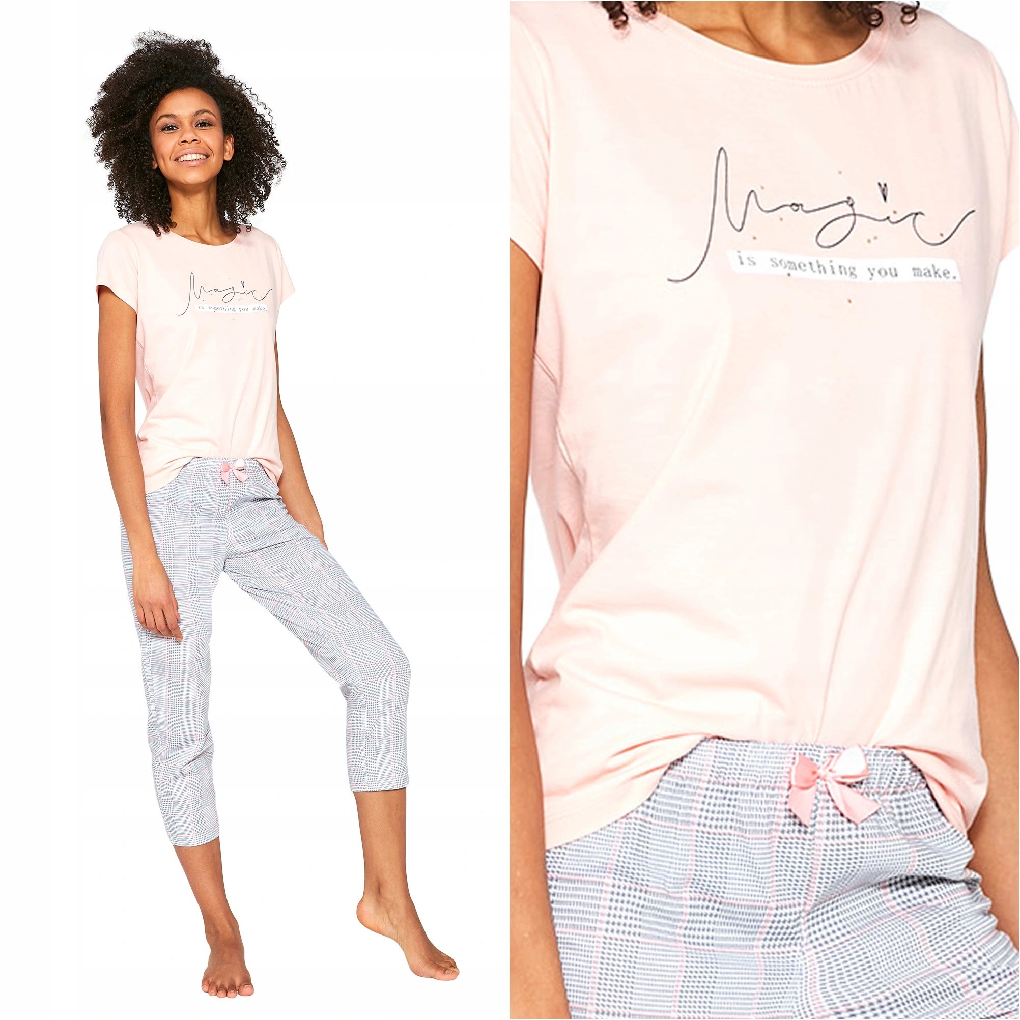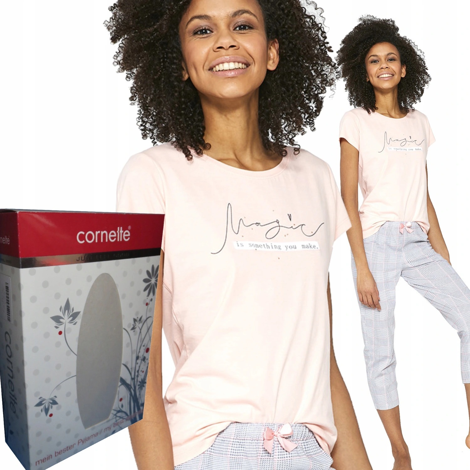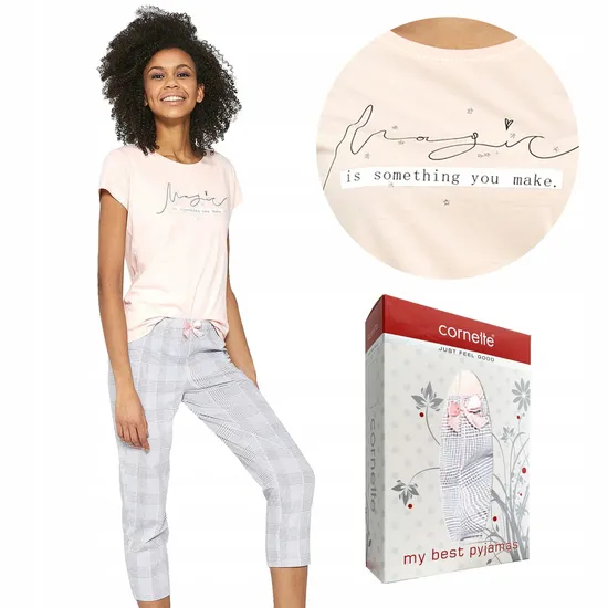 Женские пижамы от Cornette очаруют каждую женщину! Изготовленный из приятного на ощупь хлопка, он обеспечит максимальный комфорт во время сна. Светло-розовая футболка с короткими рукавами и надписью «Magic is something you make» в окружении золотых маленьких звездочек.