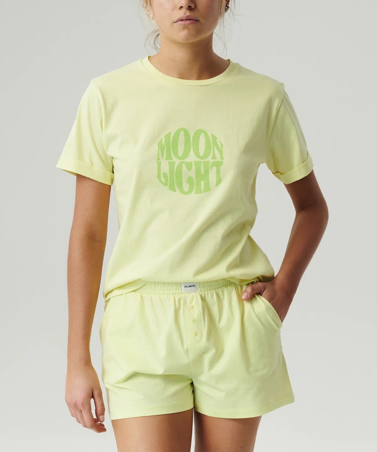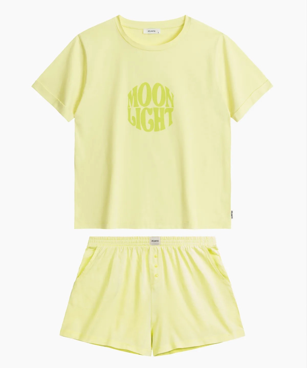 Женская пижама Atlantic NLP-487 цвета лайм из коллекции Homewear - уютный комплект из футболки и шорт для комфортного отдыха. Изготовлена из 100% натурального хлопка, который мягко облегает тело и обеспечивает приятные ощущения при носке. Футболка с аккуратным круглым вырезом и короткими рукавами дополнена шортами с эластичной резинкой, декоративными пуговицами и двумя удобными карманами. Доступна в трех нежных оттенках: персиковом, бежевом и лаймовом. Размерный ряд от S до XXL. Комплект в элегантной упаковке станет прекрасным подарком для близких на любой праздник или просто как знак внимания. Идеальный выбор для тех, кто ценит качество, комфорт и стиль в повседневной жизни.