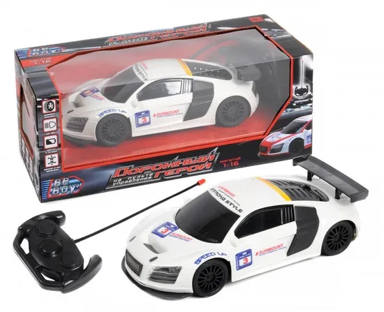 Машинка на радиоуправлении BeBoy работает от батареек, в комплекте пульт управления. Движение вперед – назад, влево – вправо. Резиновые покрышки. Свет фар. М 1:16.