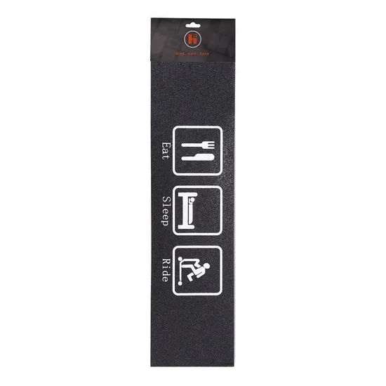 Оригинальная шкурка HIPE под обрезку. Размер 560 мм на 150 мм. Подходит для любых трюковых самокатов. Есть три правила: ЕШЬ, СПИ, КАТАЙ!