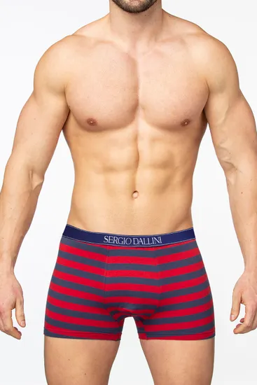 Трусы-боксеры от SERGIO DALLINI с полосатым принтом выполнены из плотного хлопкового полотна. Присутствие 5% эластана обеспечивает отличное облегание к телу, устойчивость к многократным стиркам. Пришивная резинка, шириной 3 см, украшена логотипом бренда. Передняя панель с подкладкой обработана плоским швом. Отсутствие боковых швов, премиальный материал, мягкая и эластичная резина обеспечат комфортное ношение на протяжении всего дня. Товар упакован в фирменной, респектабельной коробке.