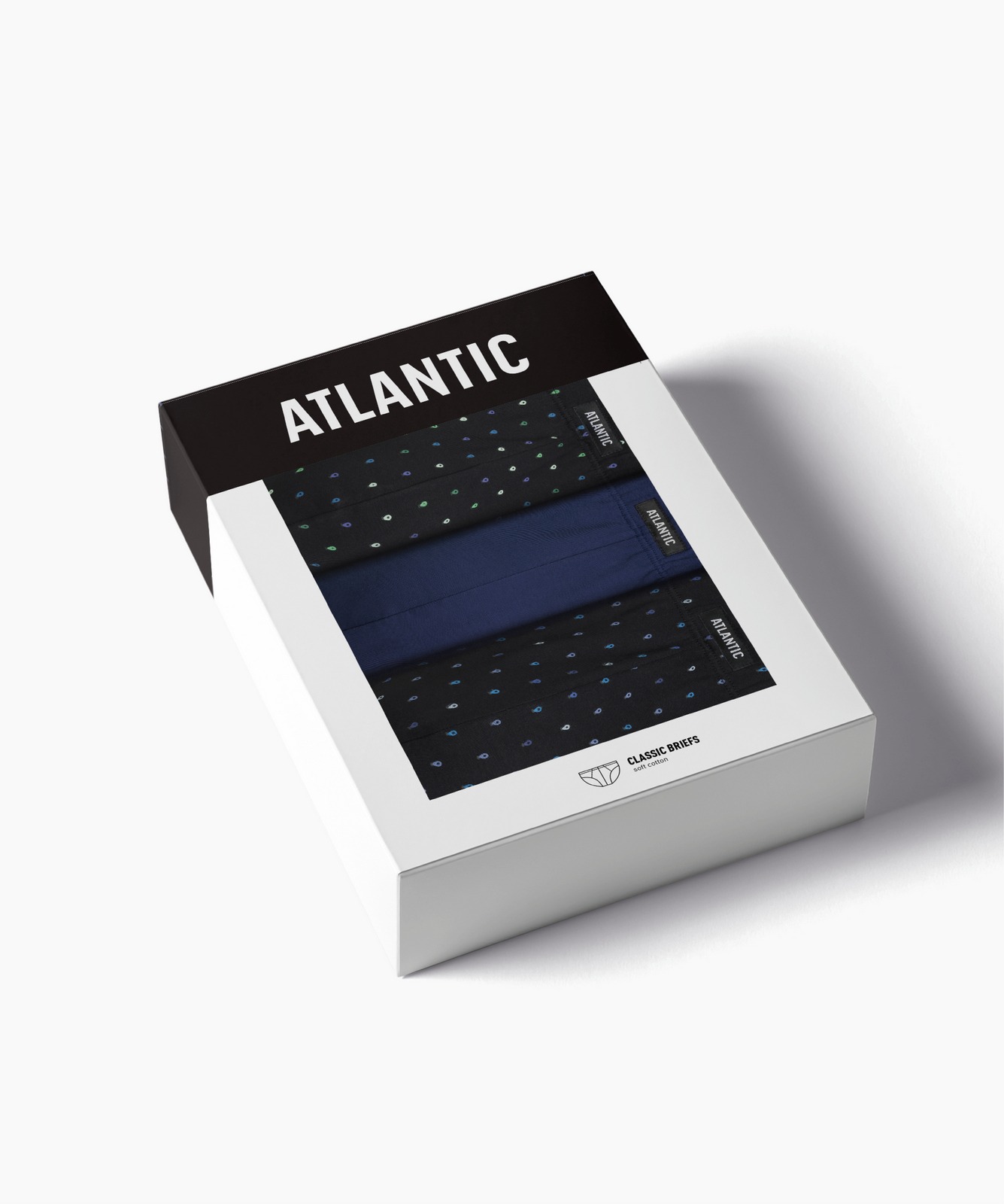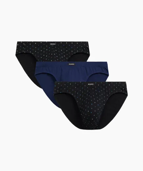 Набор из 3 мужских трусов-слипов Atlantic 3MP-204 — комфорт в деталях. Три модели в черном, темно-голубом и черном цветах изготовлены из 100% хлопка для максимального комфорта. Анатомический крой со слегка заниженной талией и скрытой резинкой обеспечивает идеальную посадку без натирания. В комплекте: однотонный вариант и две модели с классическими принтами — выбор для разных предпочтений. Прочный хлопковый трикотаж сохраняет форму после множества стирок. Размерный ряд от S до 4XL подойдёт мужчинам любого телосложения. Трусы-слипы Atlantic 3MP-204 — выгодное решение для тех, кто ищет качественное бельё по доступной цене.