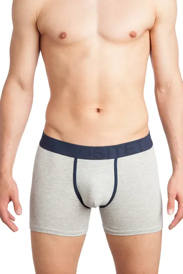 Трусы из высококачественного плотного, однотонного хлопка с добавлением эластана. Резинка синего цвета шириной 3 см пришита накладным тройным швом. Внешняя и внутренняя сторона пояса украшена логотипом бренда, внутренняя сторона стыковочного шва закрыта атласной лентой с логотипом бренда. Гульфик из двойной ткани украшен окантовкой белого цвета, вшита ластовица, боковые швы отсутствуют.