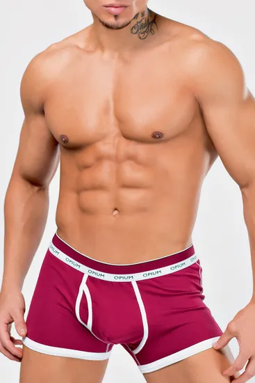 Мужские боксеры, которые Вы захотеть носить чаще остальных, благодаря интересному цветовому решению: сочный бордовый цвет основной ткани с белым кантом. Эти трусы выполнены из хлопковой ткани с эластаном, имеют удобный анатомический крой, функциональное боковое отверстие, нарядную комфортную резинку с логотипом Opium.